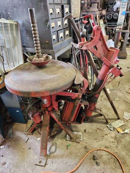 Sale Name: (AUCTION ID# 9003) 7/5 WROUGHT IRON FENCING - ANTIQUE SCALES - TOOLS - OLD BOXES - BLACK POWDER - VINTAGE LIGHTS - ENGINE - METAL STOOLS - VINTAGE TIRE CHANGING STATION - OLD METAL PARTS BINS WITH PARTS - DECORATIVE WROUGHT IRON FENCE CORNER POSTS - WELDING SUPPLIES - AND MUCH MUCH MORE