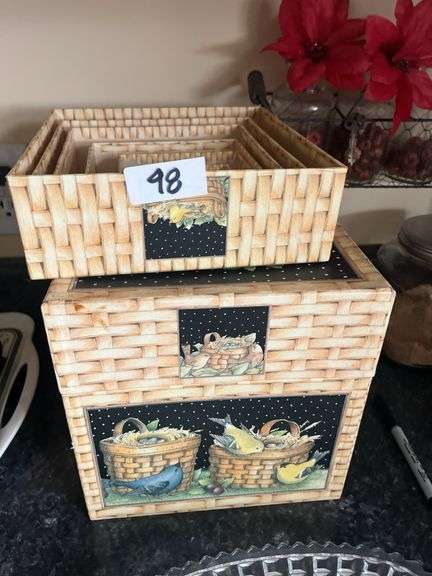 Nesting Boxes there are 6 Boxes with Birds and Baskets Designs