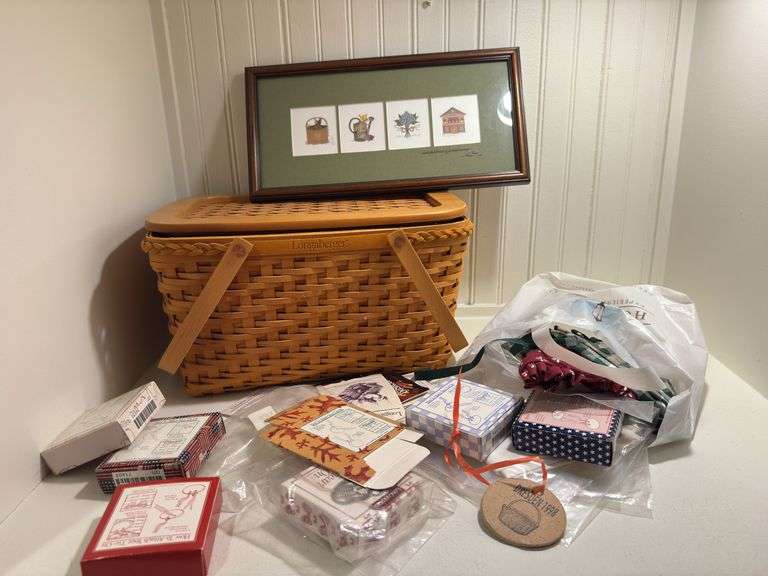 Framed Print, Large Longaberger Basket and Various Basket Tags
