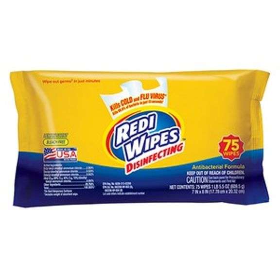 Redi-wipes disenfecting bleach free wipes, lemon scented 75ct pack 12 per box