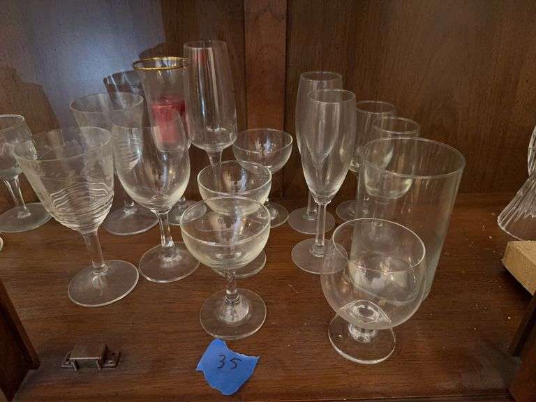 lot of various cut glass glasses and goblets