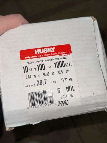 Husky Plastic Sheeting, equipment cover, paint protection, vapor barrier, moisture barrier, and insulation.