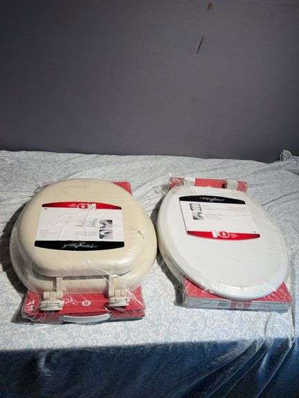 2 toilet seats. The toilet seat to the left in the picture is 16.5in/42cm with a comfortable, cushioned seat. The toilet seat to the right is 16.5in/42cm and never loosens and can remove for cleaning.