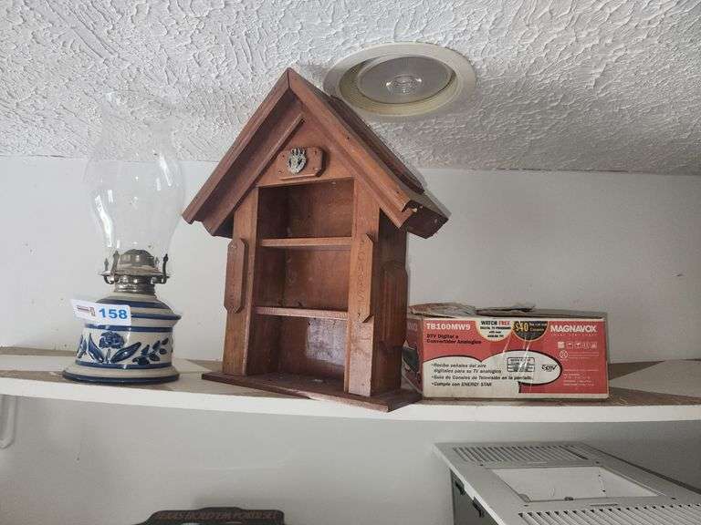 Lantern with glass hurricane globe, wooden knick knack holder and more