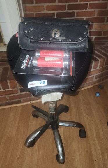 Motorcycle stool with pouch and BikeMaster motorcycle grips