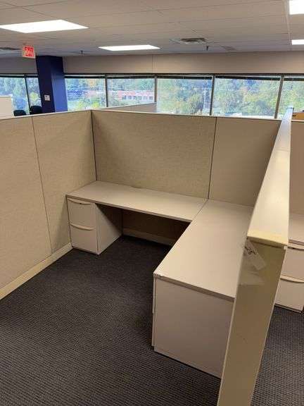 2 Work Station cubicle office System. All outside and inside walls included. Desks and cabinets included but no office supply contents included